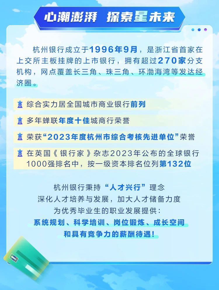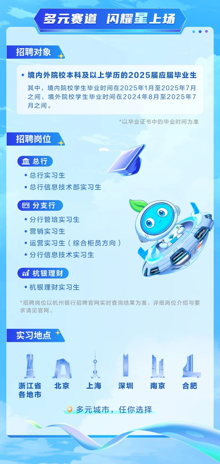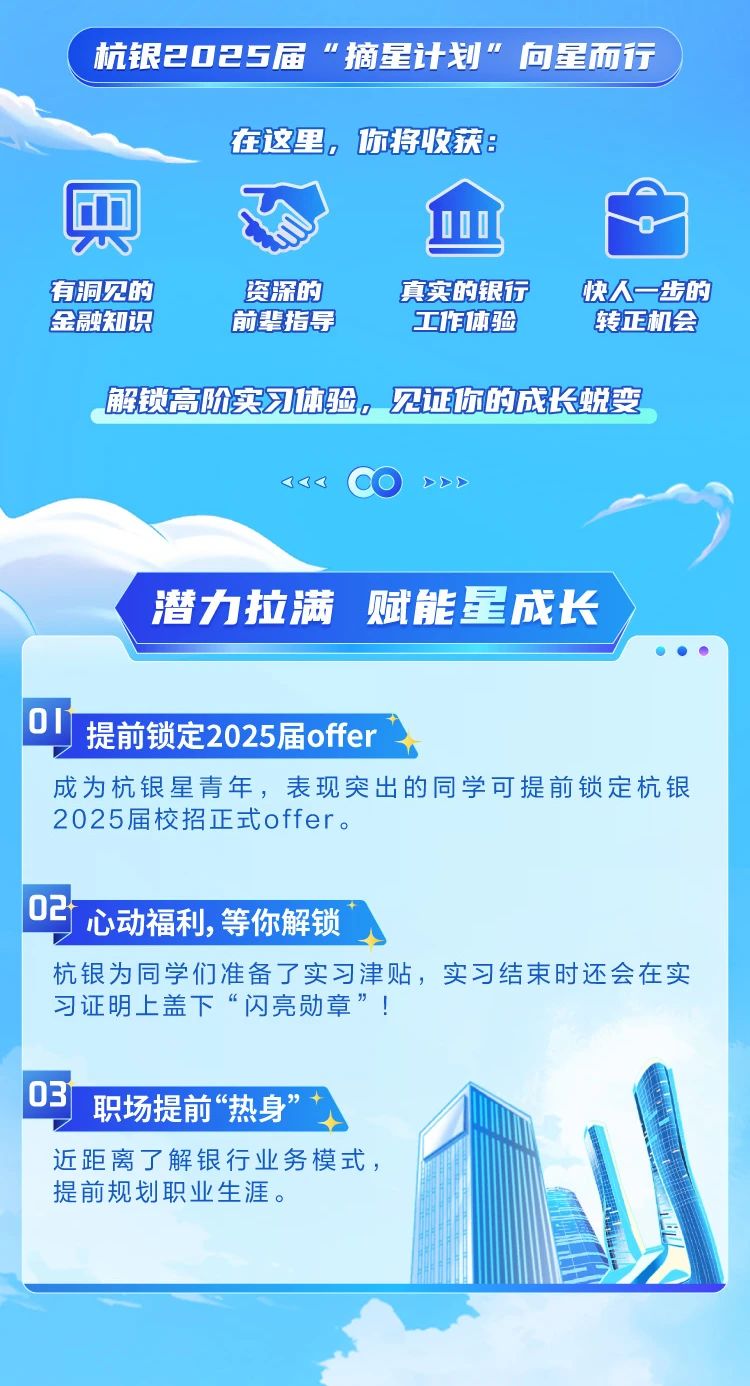 【2025届招聘】杭州银行2025届实习生招聘正式启动