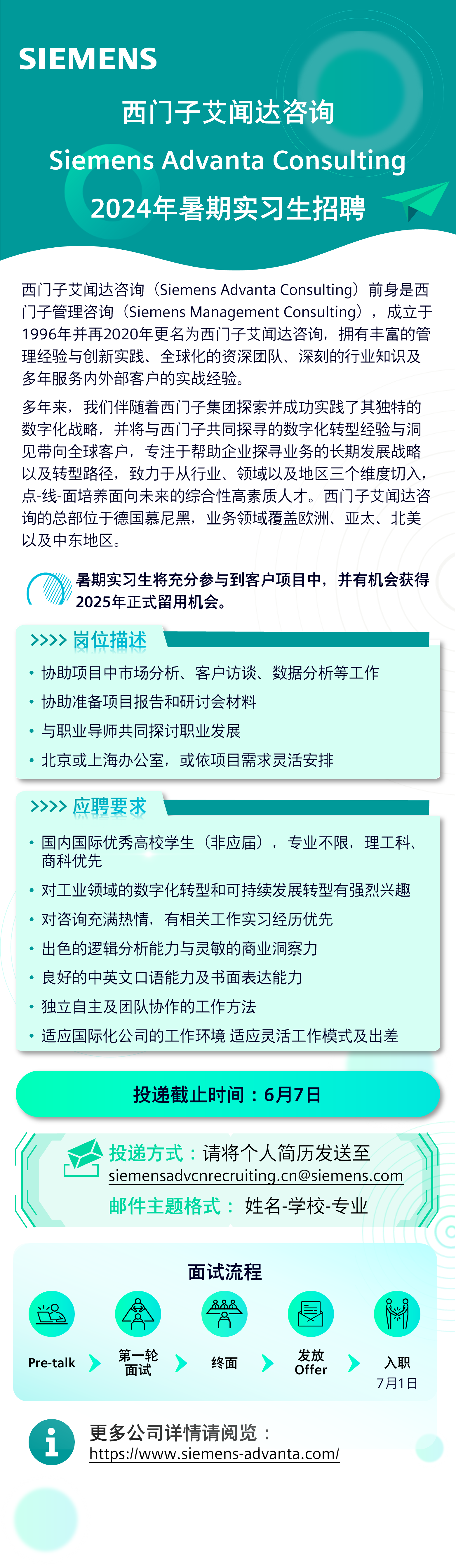 【2025届招聘】西门子艾闻达咨询暑期实习生招聘正式启动