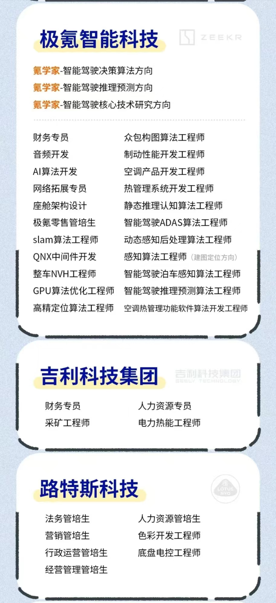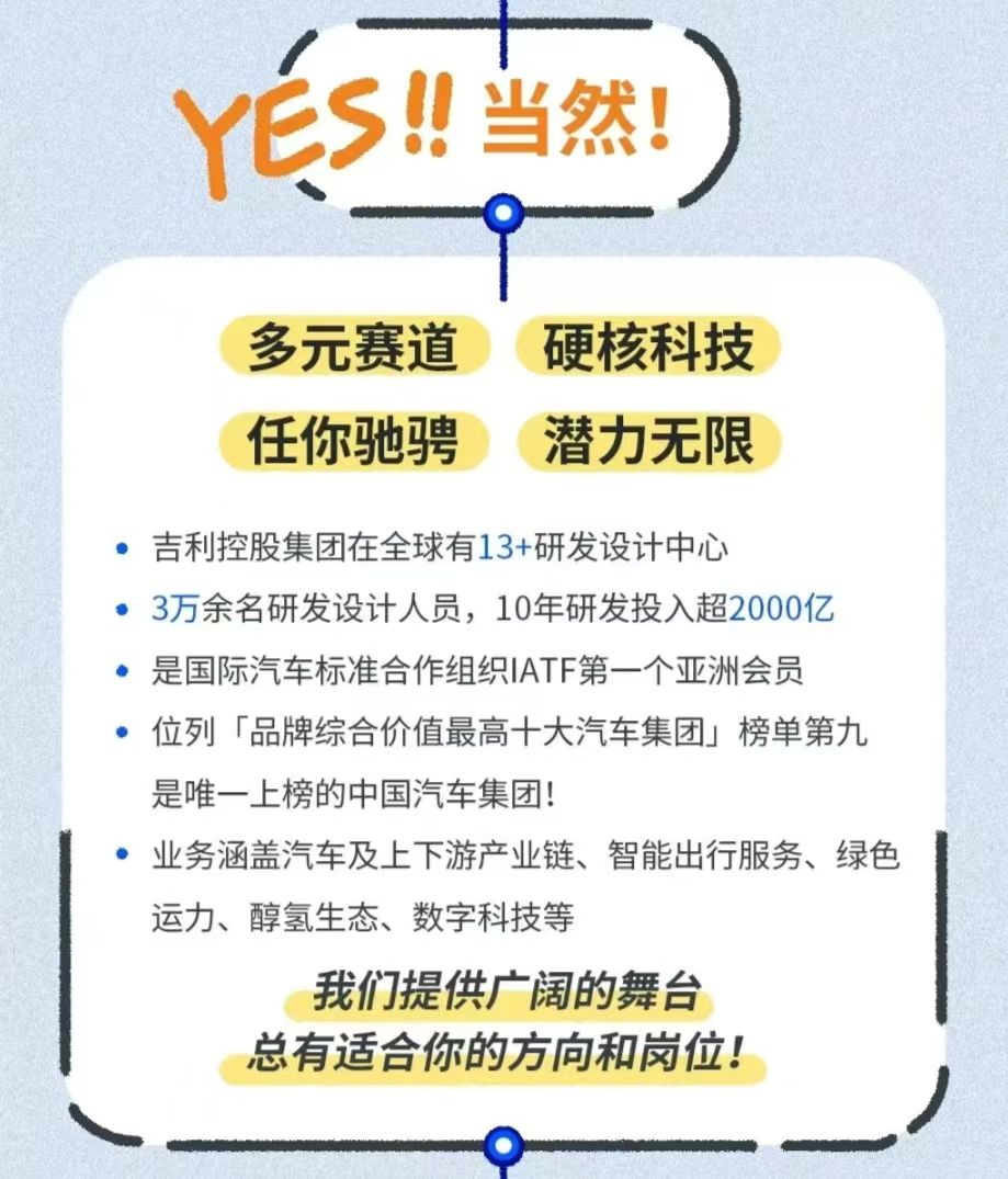【2025届招聘】吉利控股集团2025届秋季校园招聘补录