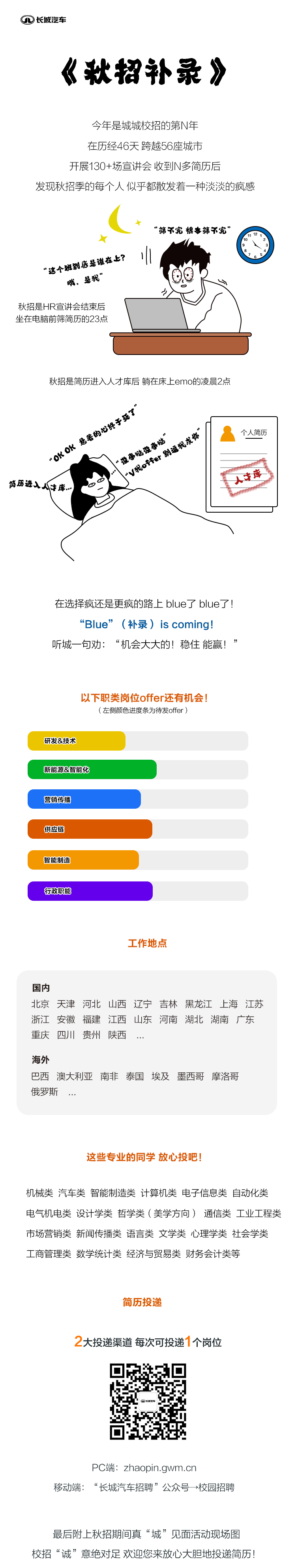 【2025届招聘】长城汽车2025届秋季校园招聘补录