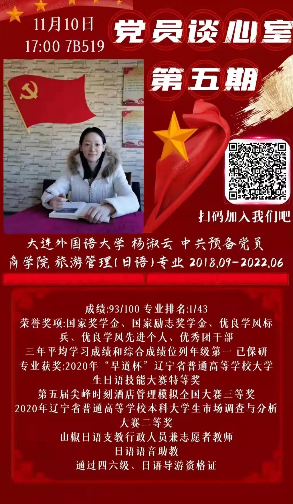 本期党员谈心室活动我们有幸邀请到了18级学生党员杨淑云同学,现在让我们一起聆听她的精彩分享吧。