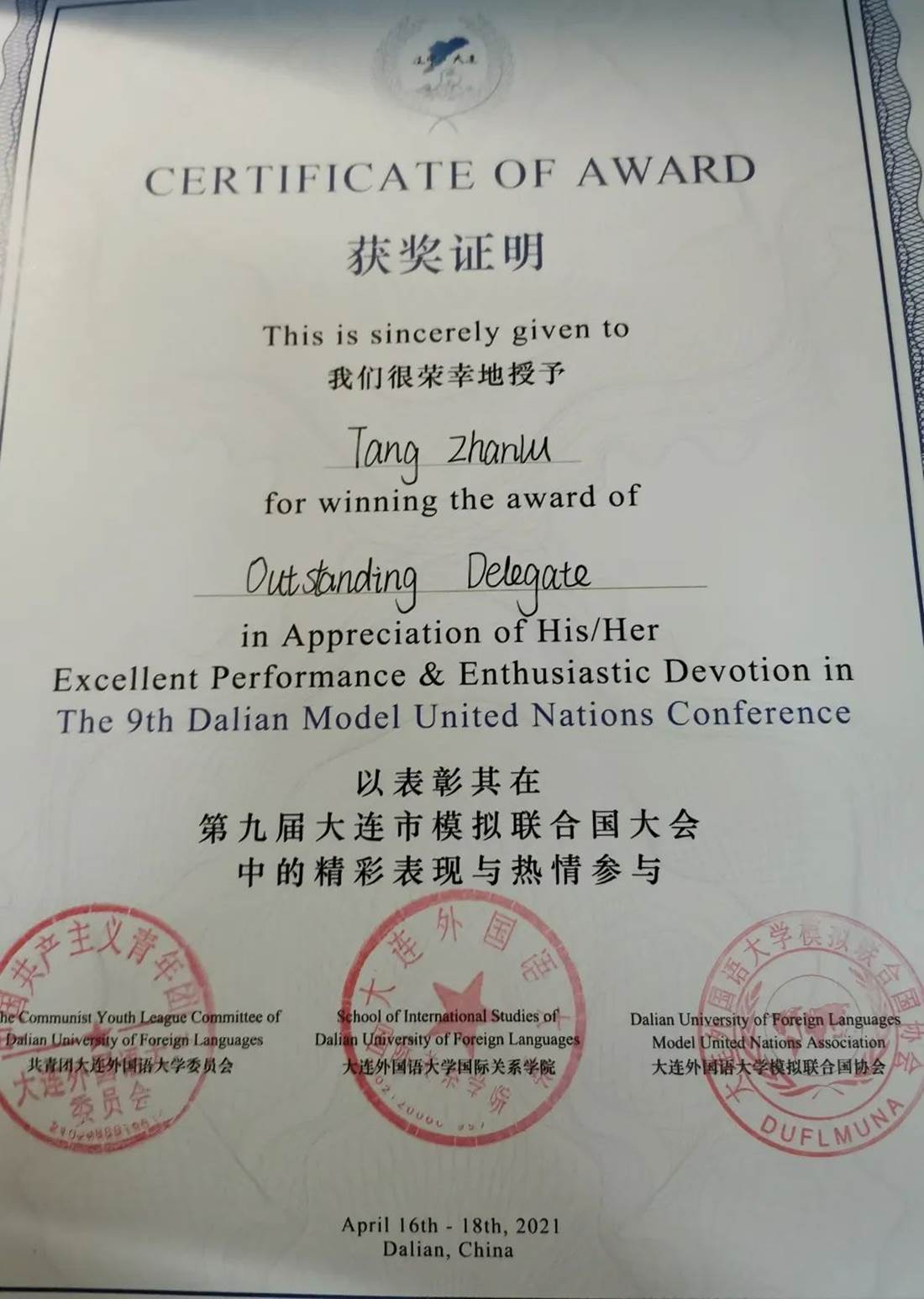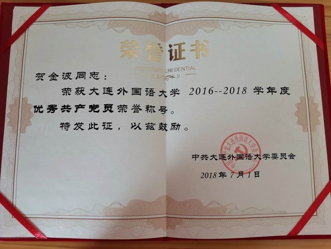 学生党员累计获得各级荣誉称号及赛事奖项一百余项。其中,4人获国家励志奖学金,1人获辽宁省政府奖学金;6人在大创、ACCA JHC就业力大比拼、全国高校商务英语竞赛、“法大杯”国际商务谈判等国家级竞赛类获奖;27人在全国大学生市场调查与分析大赛、辽宁省普通高等学校本科大学生导游大赛、“互联网+”大学生创新创业大赛、辽宁省普通高等学校大学生日语技能大赛、第九届大连市模拟联合国大会、营销挑战赛等省市级比赛中获奖;34人在各级各类校级评比和赛事中获奖。