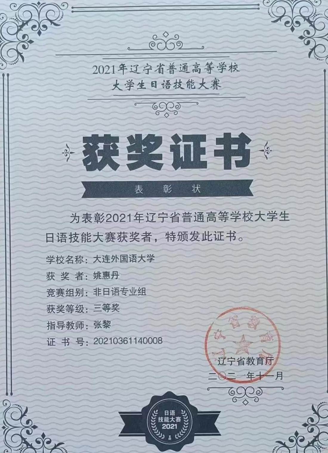 “基于海外实践基地的旅游管理专业实践教学模式构建与实践”获得辽宁省本科教学成果奖二等奖;“外语类院校外语+旅游创新应用型人才培养模式研究与实践”与“基于产教融合的商科专业应用型人才培养模式构建与实践”等2个项目获得辽宁省本科教学成果奖三等奖。