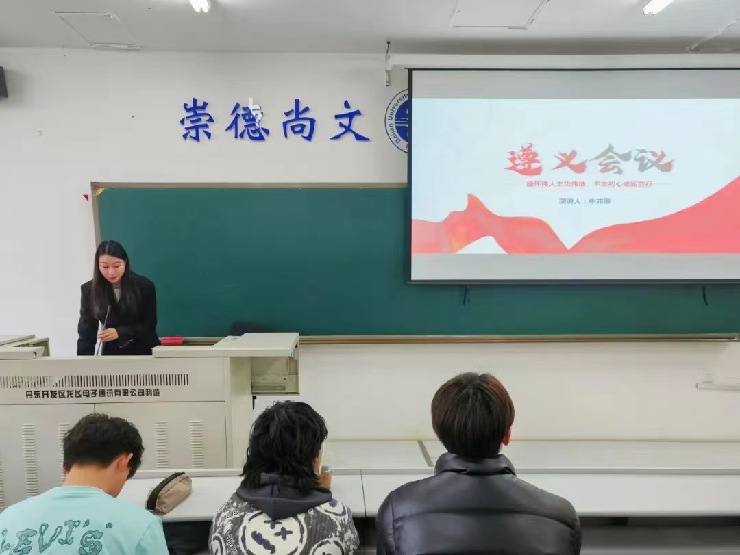 在本期活动中,牛沛琳同学以“缅怀伟人丰功伟绩,不忘初心砥砺前行”为主题,向同学们讲述了遵义会议的背景、过程,带领大家重温了遵义会议的的精神内涵和价值力量,牛沛琳同学指出我们应当不懈学习将理论同现实结合,坚持实事求是的遵义会议精神。