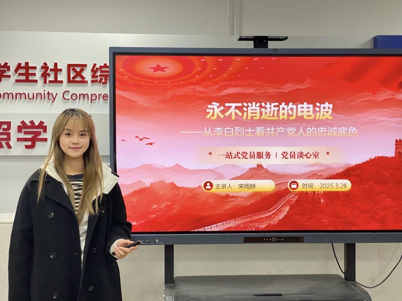 于综合楼“一站式”学生社区综合管理服务中心召开“聆听党史故事,汲取前行力量”第四期党员谈心室。本期活动邀请到宋雨妍同学作为主讲人,让我们来聆听她的精彩分享吧。