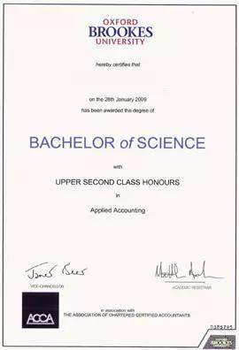 2)学员通过ACCA应用技能阶段全球统考,可获得高级商业会计证书,并可申请牛津布鲁克斯大学应用会计学士学位。