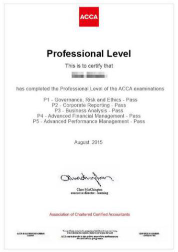 2ACCA各阶段执业资格证书(通过ACCA各阶段全球统考,并可申请海外大学学位证书